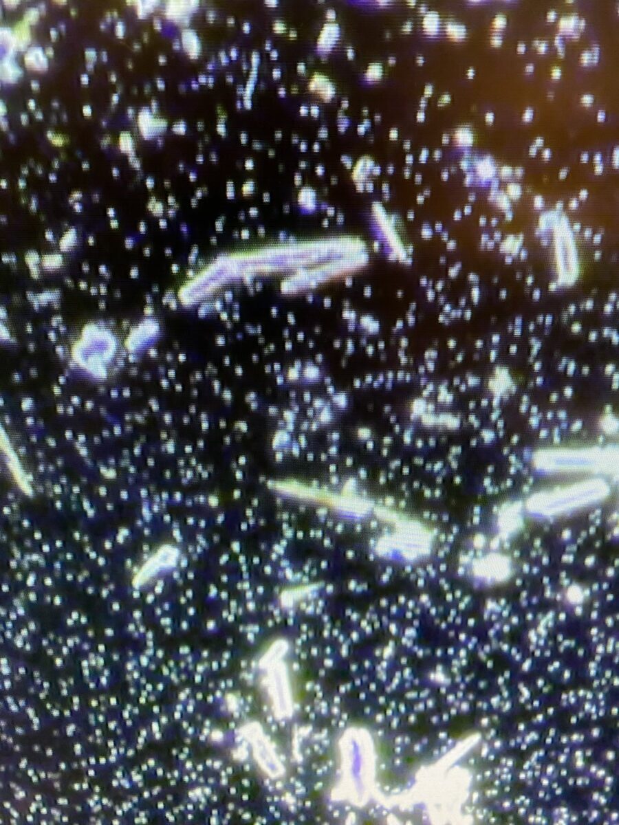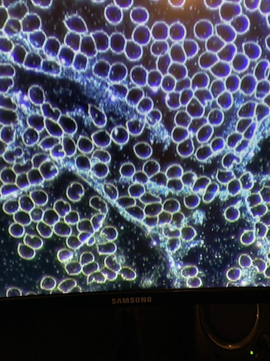 Dr. Diane and I have been working in this field for more than 20 years and have never witnessed such unusual artifacts in the live blood.